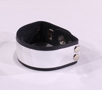 Black Plate Wide Leather Button Wristband
