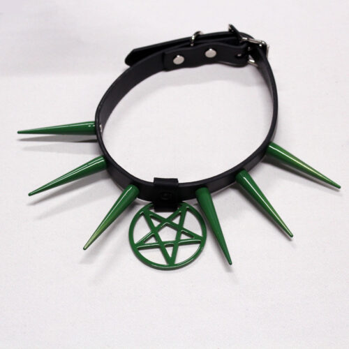 Green Long Cone Spike Pentagram Choker